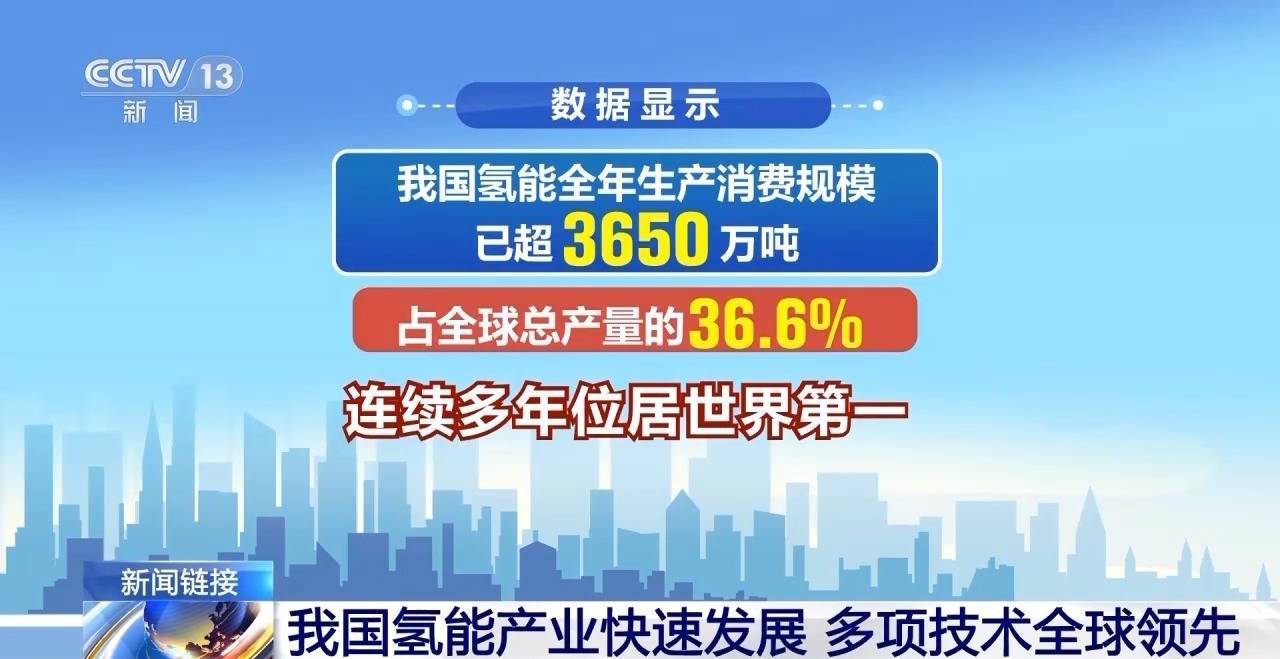 数据显示,我国氢能全年生产消费规模已超3650万吨,占全球总产量的36.6%,连续多年位居世界第一。